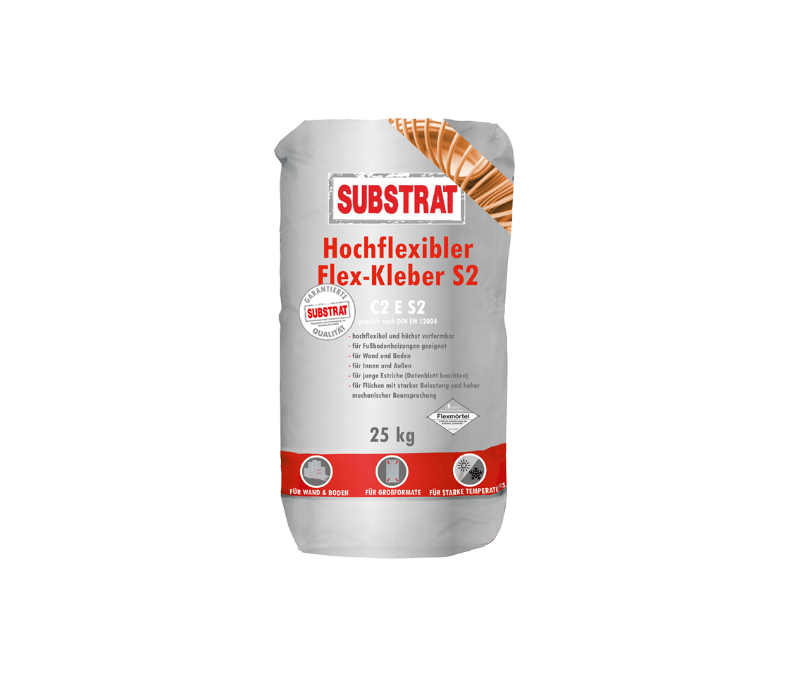 Hydraulisch erhärtender, hochflexibler, verbrauchs- und verarbeitungsoptimierter zementhaltiger Klebemörtel. Geeignet für die Verlegung auf „jungen Zementestrichen“ (unbeheizt) – frühestens 5 Tage nach Begehbarkeit. Ebenfalls geeignet für Betonbodenkonstruktionen mit einer Mindestqualität von CT-F4 und einem Alter von mindestens 28 Tagen (bzw. Sonderinformationen einholen). Der Kleber überzeugt durch sehr gute Verarbeitungseigenschaften, höchste Flexibilität und Verformungsfähigkeit. Er wirkt entkoppelnd, reduziert Spannungen und kann in vielen Anwendungsbereichen ohne Grundierung eingesetzt werden. Ideal für großformatiges Feinsteinzeug. Universell einsetzbar im Dünnbettverfahren auf Wand- und Bodenflächen sowie als Fließbettkleber auf Bodenflächen.