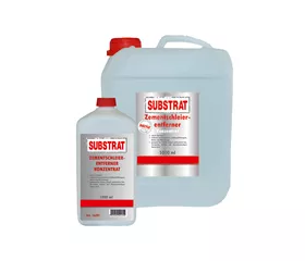 Substrat Marmor Zementschleierentferner Konzentrat Säurefreies Reinigungskonzentrat zur Entfernung von feinem Zement- und Kalkschleier auf säureempfindlichem Naturstein wie Marmor, Travertin oder Solnhofener Platten. Ideal für empfindliche Oberflächen. • verdünnbar bis 1:10 • säurefrei